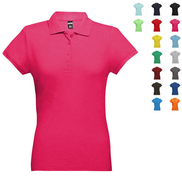 Polo femme publicitaire, coupe cintrée, patte de boutonnage 4 boutons ton sur ton, col et manches en bord côte