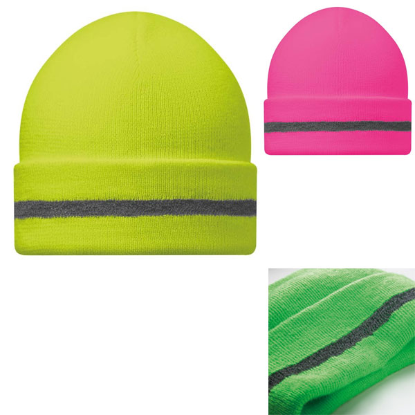 Bonnet fluo personnalisable 100% acrylique coloris : jaune fluo, orange fluo, vert fluo, rose fluo